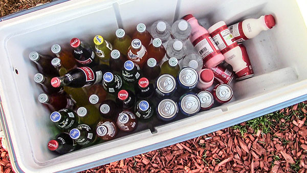 The street-side stand may not quite be full-service,but it does offer a cooler of drinks. (No alcohol.) |