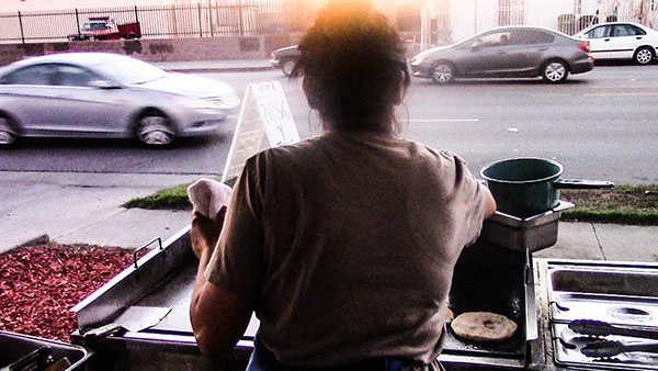 As the light fades around 6 p.m., Karen has still only served about three customers. She is preparing for a long night ahead on Normandie Blvd. -- and can only hope that the police do not arrive to take away her equipment, and her livelihood. |