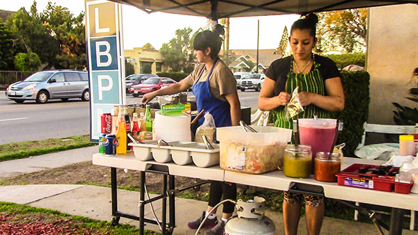 The pupusa girls, Karen and Virginia, set up their wares at 5 p.m., ready for a long night stretching until 1 a.m. Their home is at a busy intersection at Normandie and Vernon, so they are sure to attract plenty of customers. On Friday, Saturday and Sunday evenings, they will repeat the whole thing. |